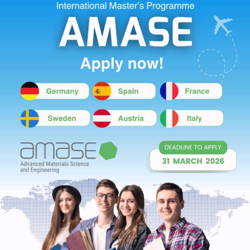 Ja està oberta la preinscripció per a cursar el curs 2026-2027 l'Erasmus Mundus master's degree in Advanced Materials Science and Engineering (AMASE).